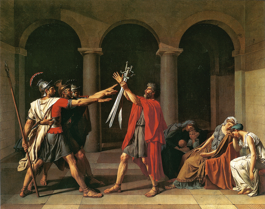 David compì le prime esperienze artistiche a Parigi, dipingendo opere di tema mitologico e storico. Importante fu il suo soggiorno a Roma (1775-1780), dove studiò il classicismo rinascimentale, la scultura antica e fu attratto dalle nuove teorie neoclassiche di J. J. Winckelmann e A. R. Mengs. Tornato in Francia, si dedicò a rappresentare episodi di storia antica.